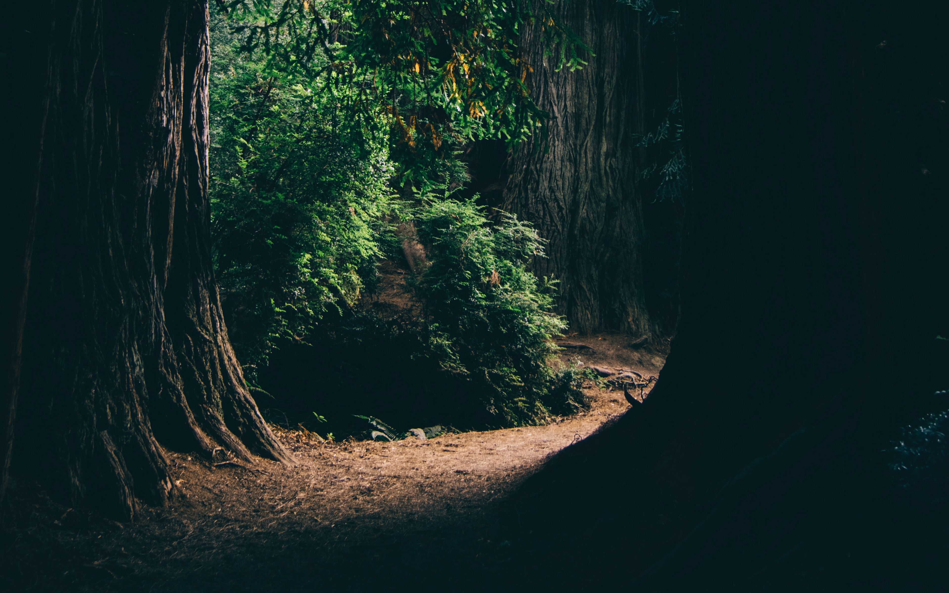 Download 3840x2400 forest, trees, shadows, passage, dark wallpaper, background 4k ultra hd 16:10