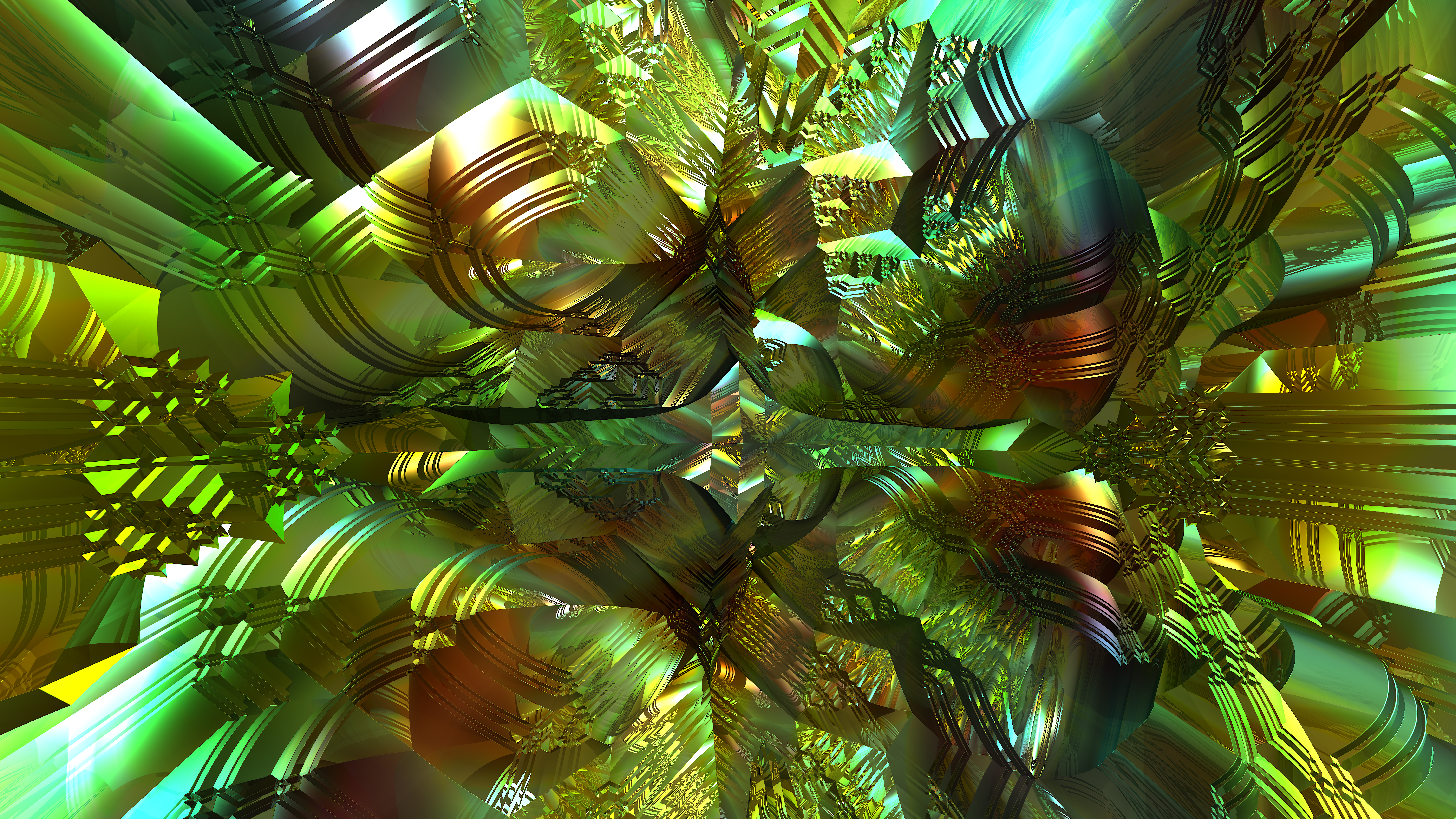 Download 8959x5039 fractal, pattern, shapes, abstraction, green wallpaper, background
