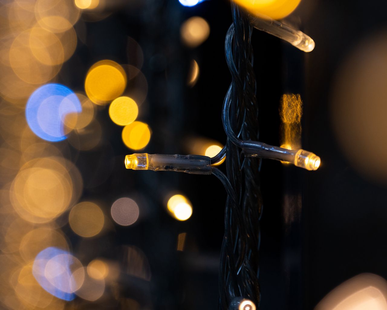 Download 1280x1024 garland, light, bokeh, glare, dark wallpaper, background standard 5:4