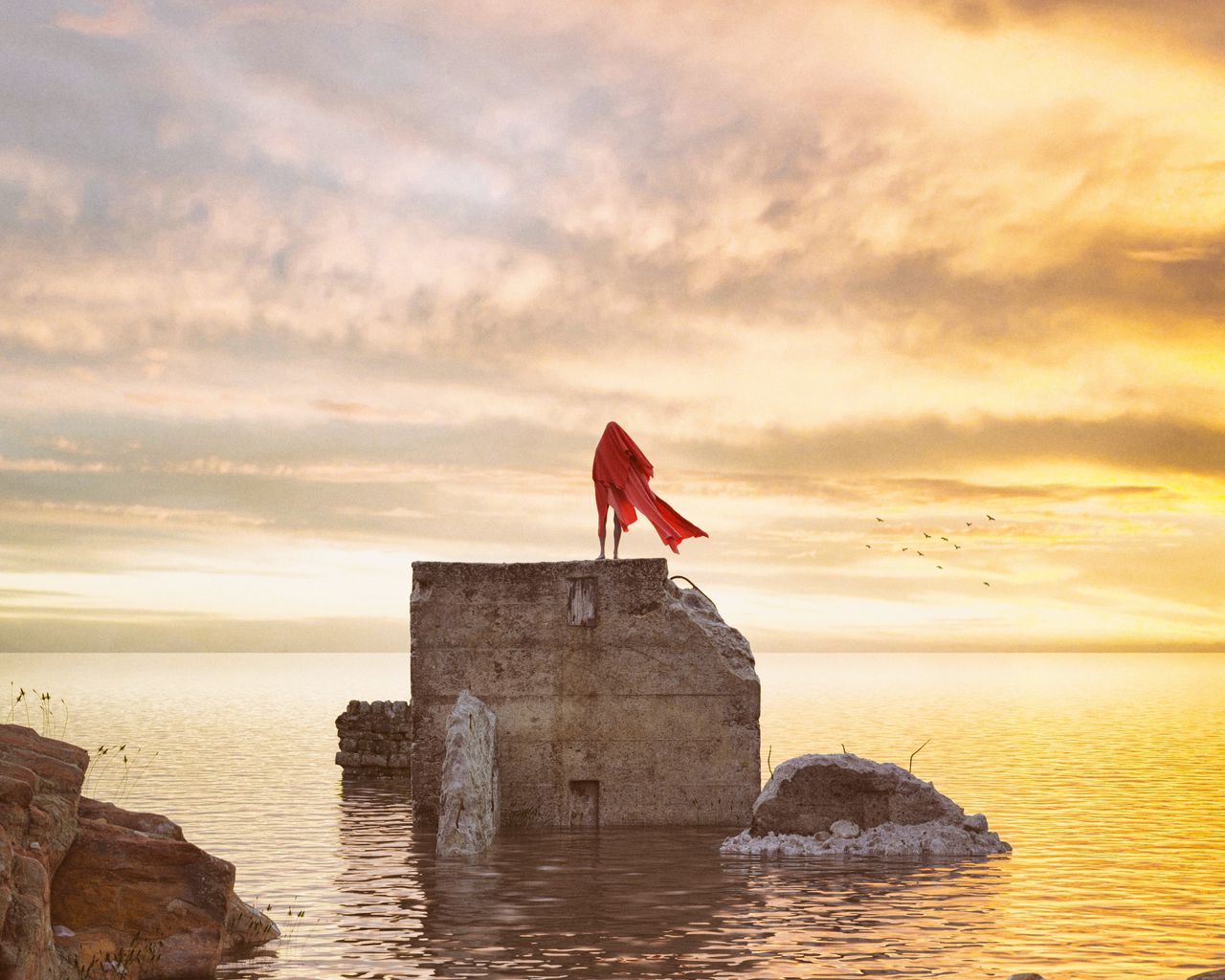 Download 1280x1024 ghost, man, cloak, ruins, sea, twilight wallpaper, background standard 5:4