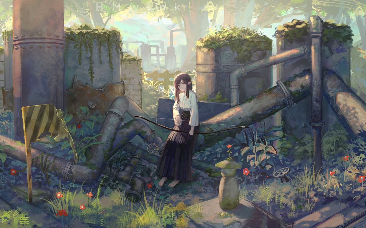 Download 1280x800 girl, elf, ruins, anime, art wallpaper, background widescreen 16:10