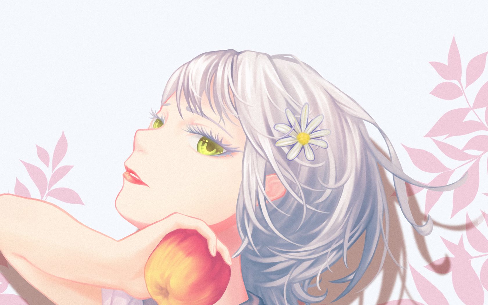 Download 1680x1050 girl, glance, apple, anime, art, light wallpaper, background widescreen 16:10