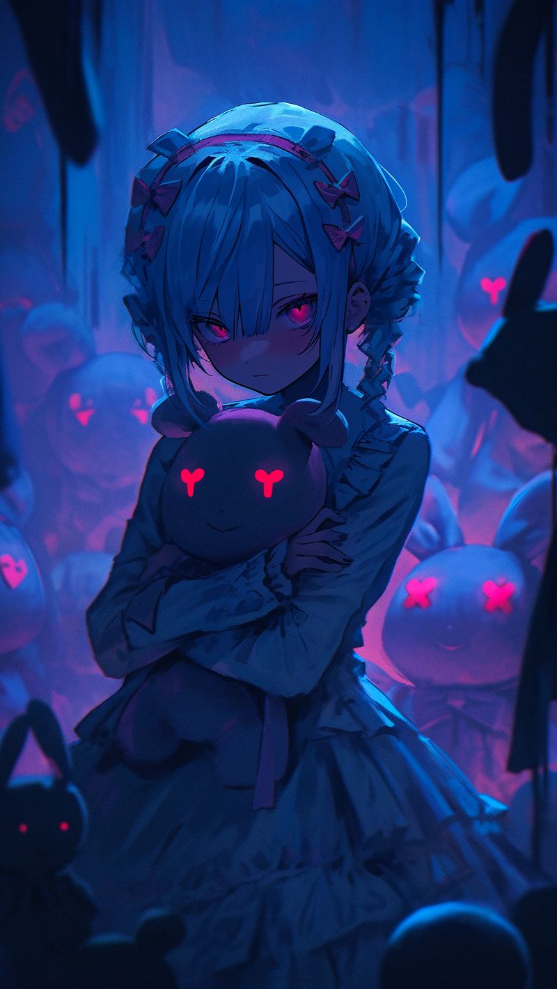 Download 800x1420 girl, headband, teddy bear, bows, blue, art, anime wallpaper, background iphone se/5s/5c/5 for parallax
