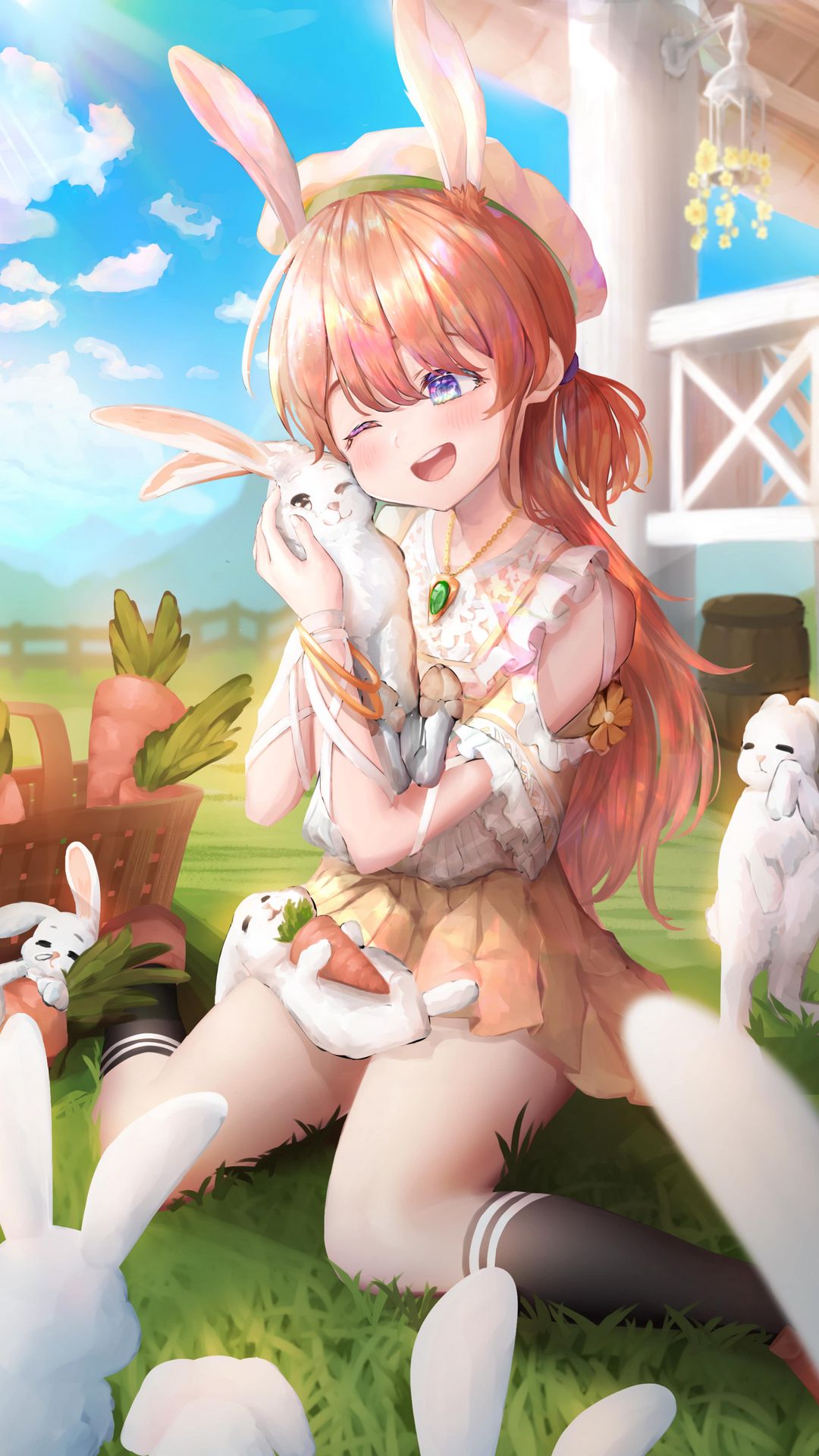 Download 1080x1920 girl, smile, rabbits, anime, art wallpaper, background samsung galaxy s4, s5, note, sony xperia z, z1, z2, z3, htc one, lenovo vibe