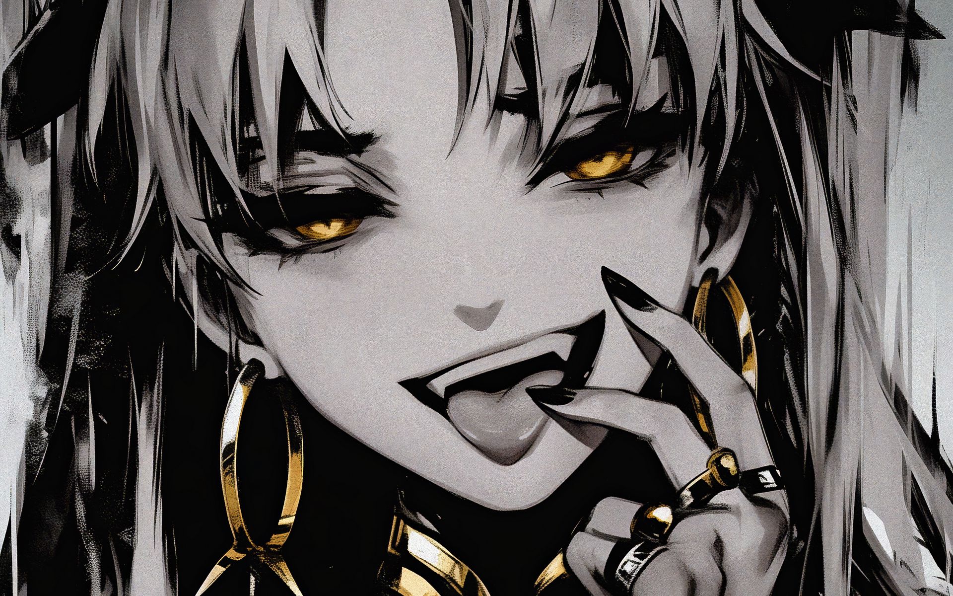 Download 1920x1200 girl, vampire, fangs, jewelry, art, anime wallpaper, background widescreen 16:10