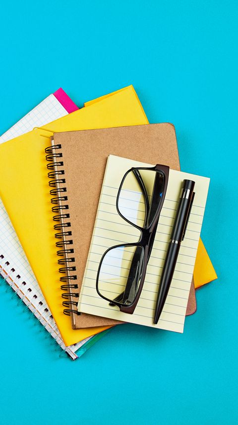 Download 480x854 glasses, notebook, pen, blue wallpaper, background nokia lumia 630, sony ericsson xperia