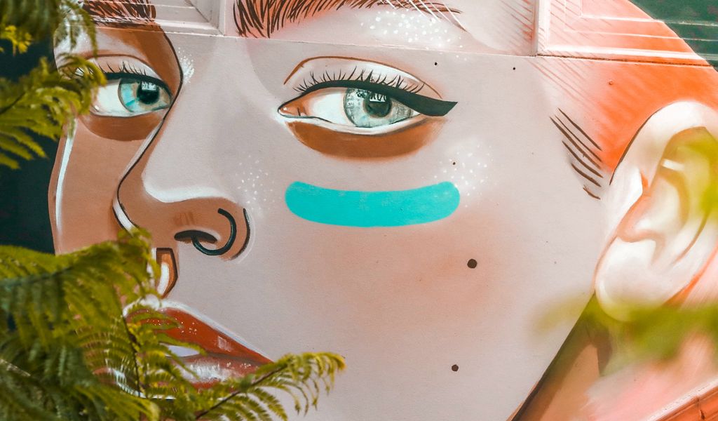 Download 1024x600 graffiti, girl, face, art, street art wallpaper, background netbook, tablet