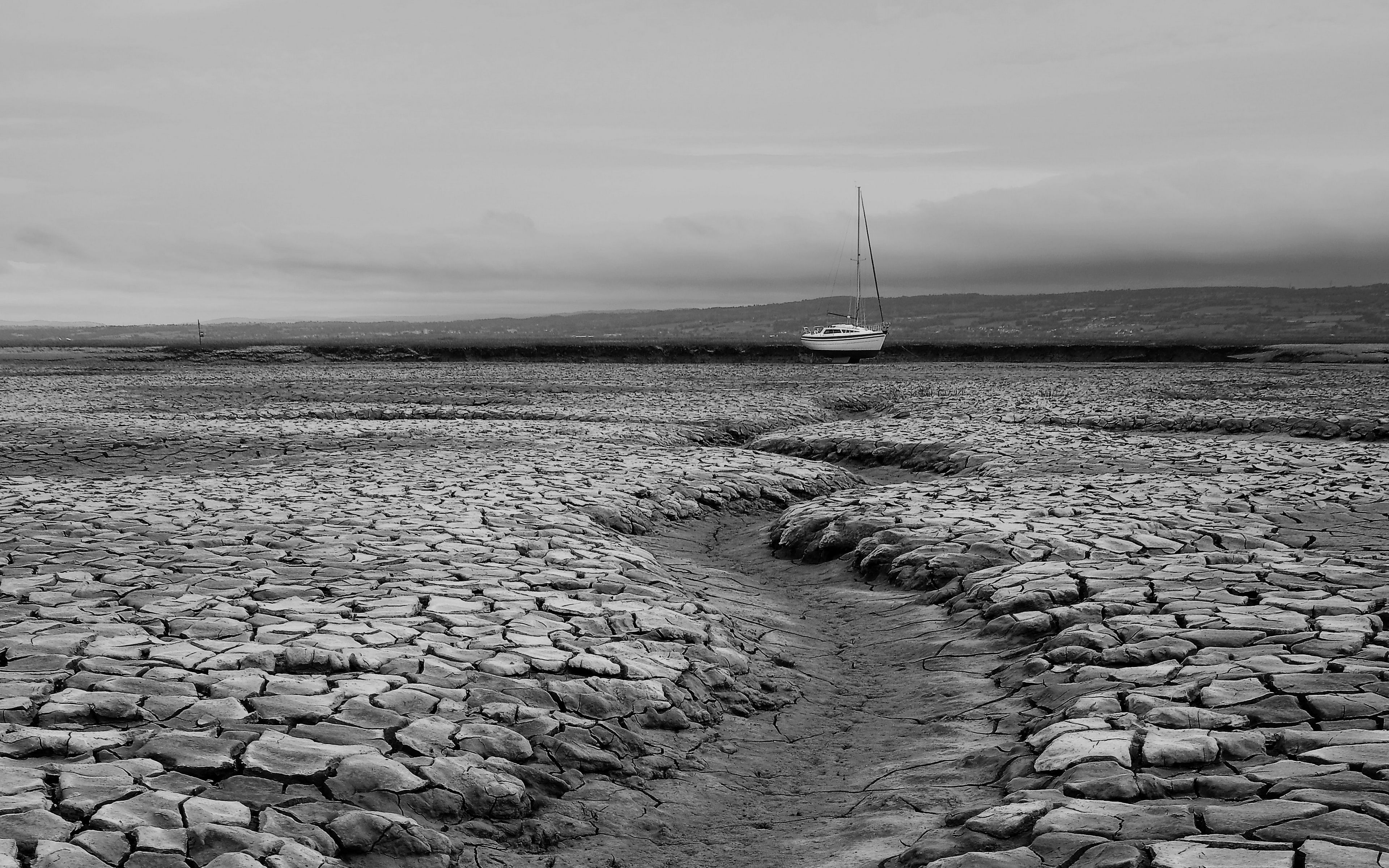 Download 3840x2400 ground, cranny, boat, bw wallpaper, background 4k ultra hd 16:10