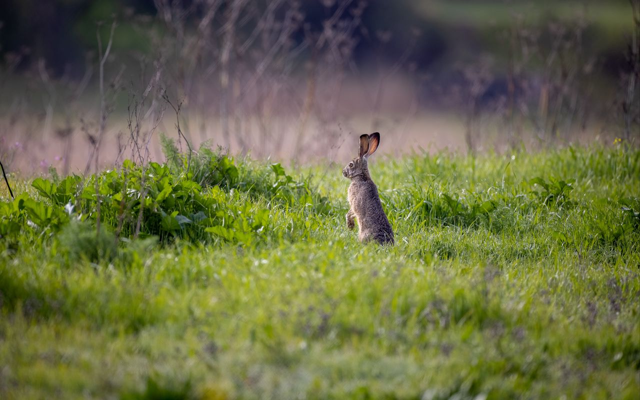 Download 1280x800 hare, animal, ears, grass, wildlife wallpaper, background widescreen 16:10