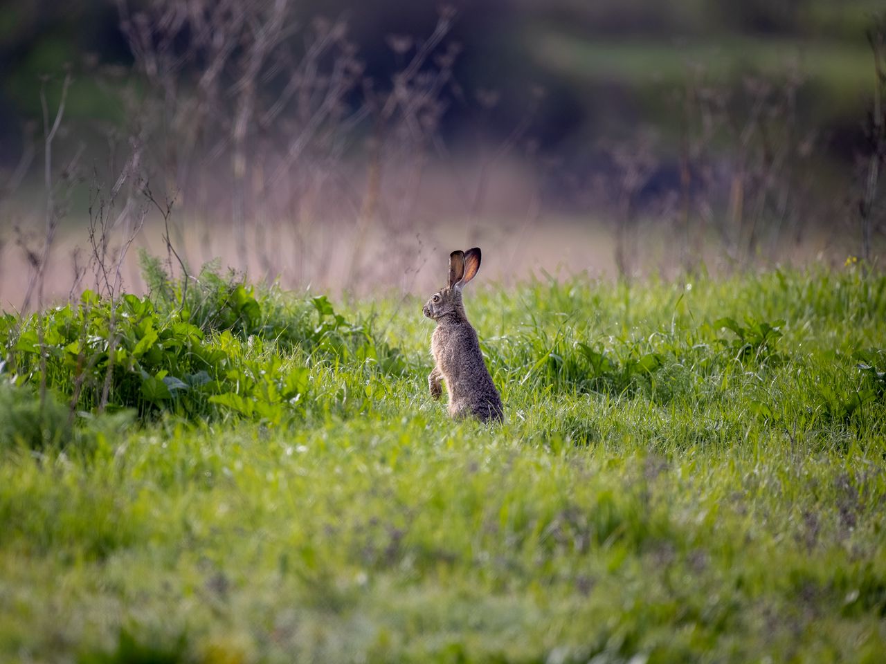 Download 1280x960 hare, animal, ears, grass, wildlife wallpaper, background standard 4:3