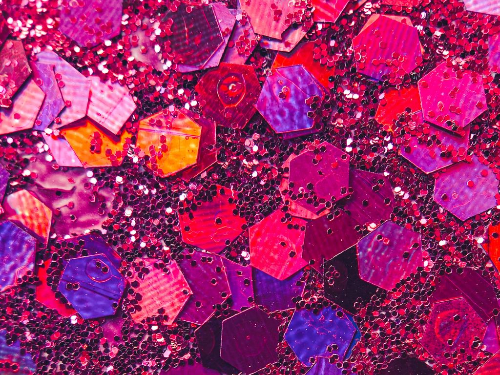 Download 1024x768 hexagons, glitter, glare, abstraction, pink wallpaper, background standard 4:3