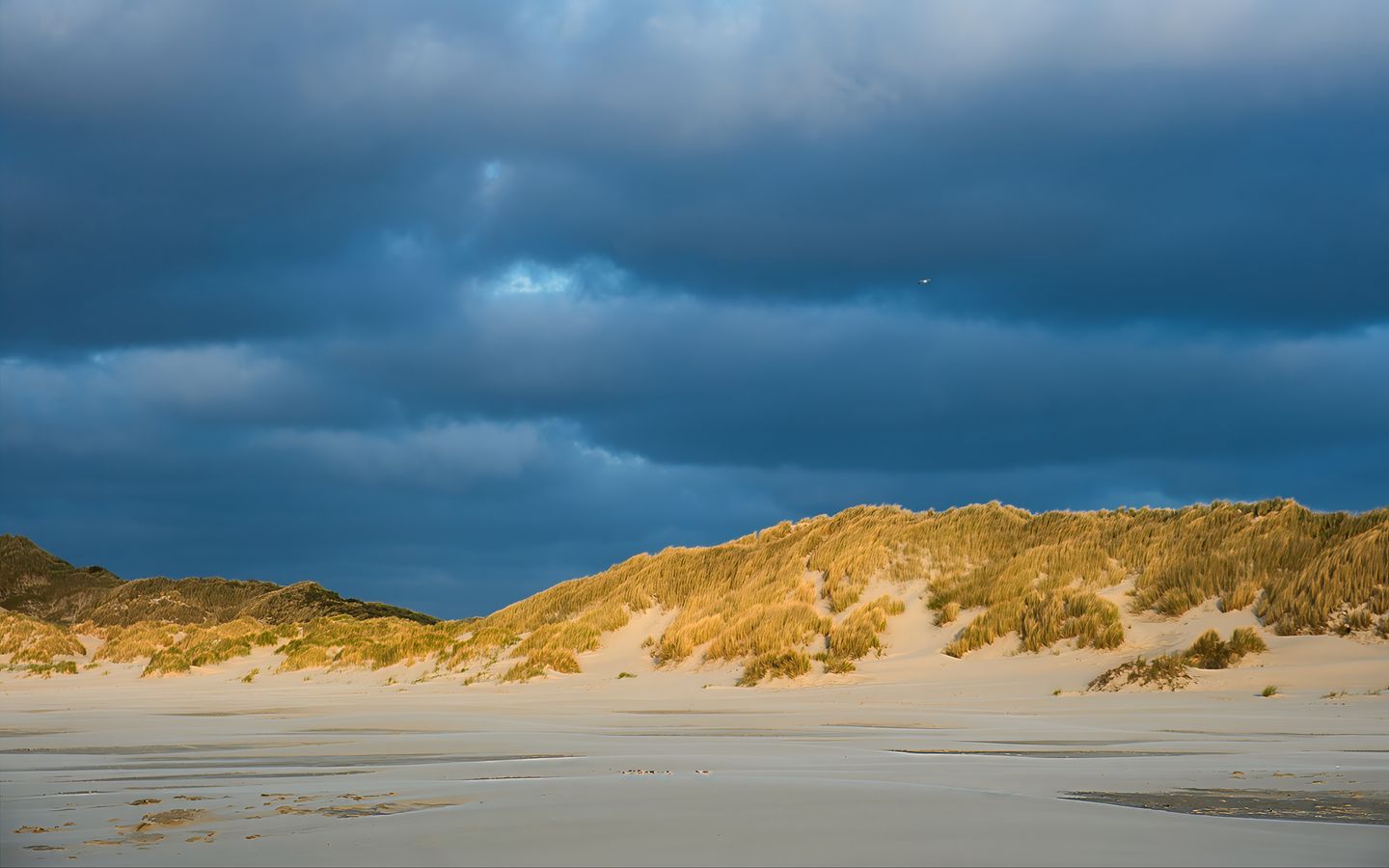 Download 1440x900 hills, beach, clouds, sky, dark, landscape wallpaper, background widescreen 16:10