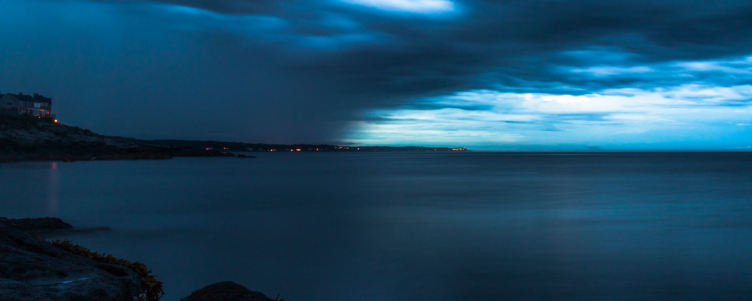 Download 2560x1024 horizon, twilight, storm, sky, clouds, shore wallpaper, background ultrawide monitor