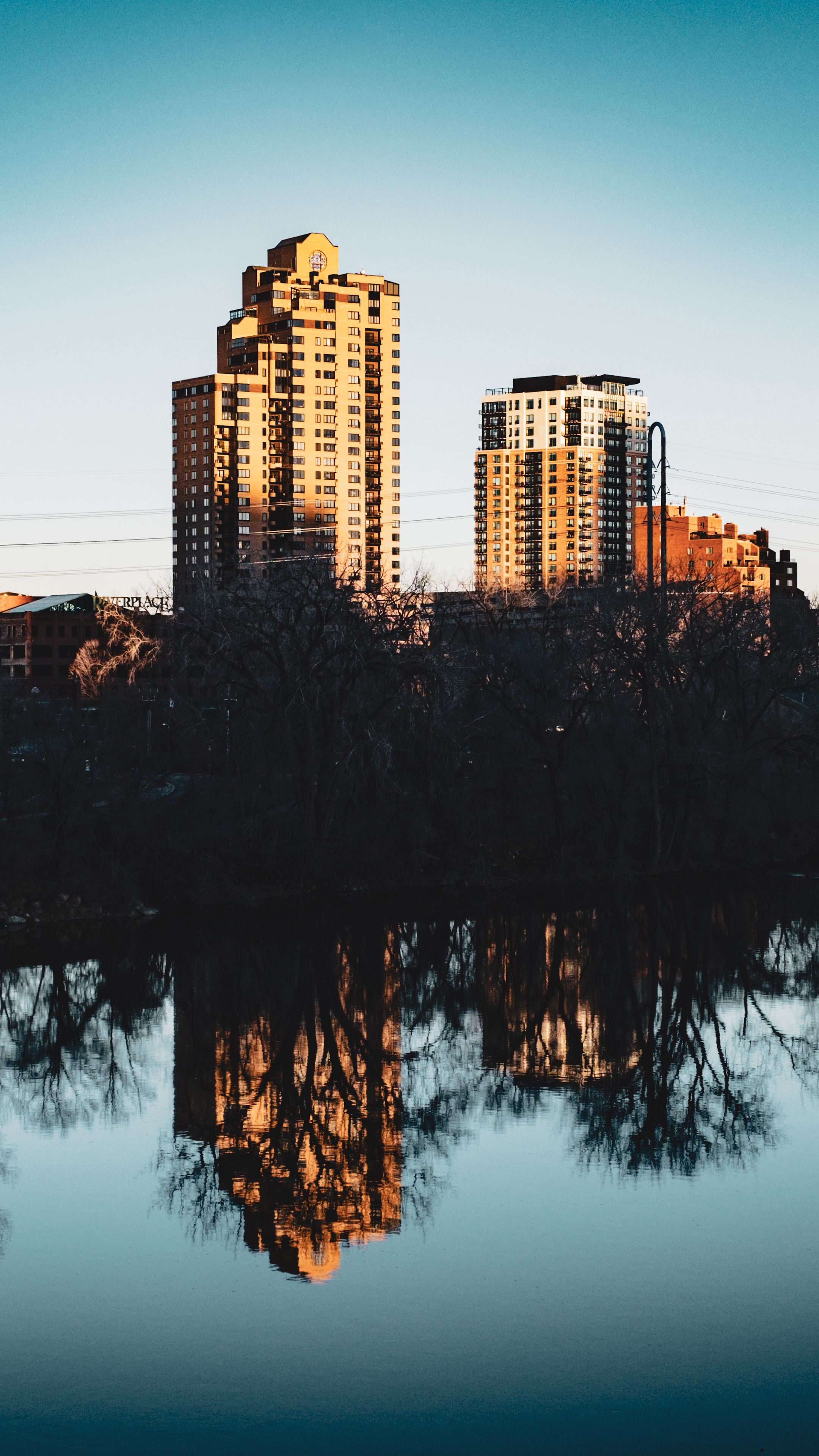 Download 2160x3840 houses, trees, reflection, river wallpaper, background samsung galaxy s4, s5, note, sony xperia z, z1, z2, z3, htc one, lenovo vibe