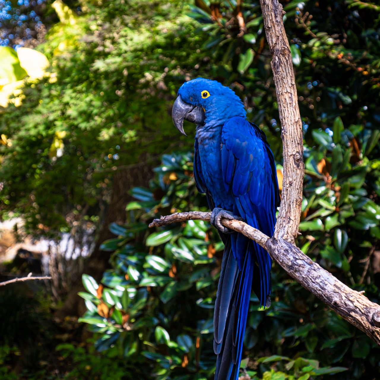 Download 1280x1280 hyacinth macaw, macaw, parrot, bird, beak, blue, branch wallpaper, background ipad, ipad 2, ipad mini for parallax