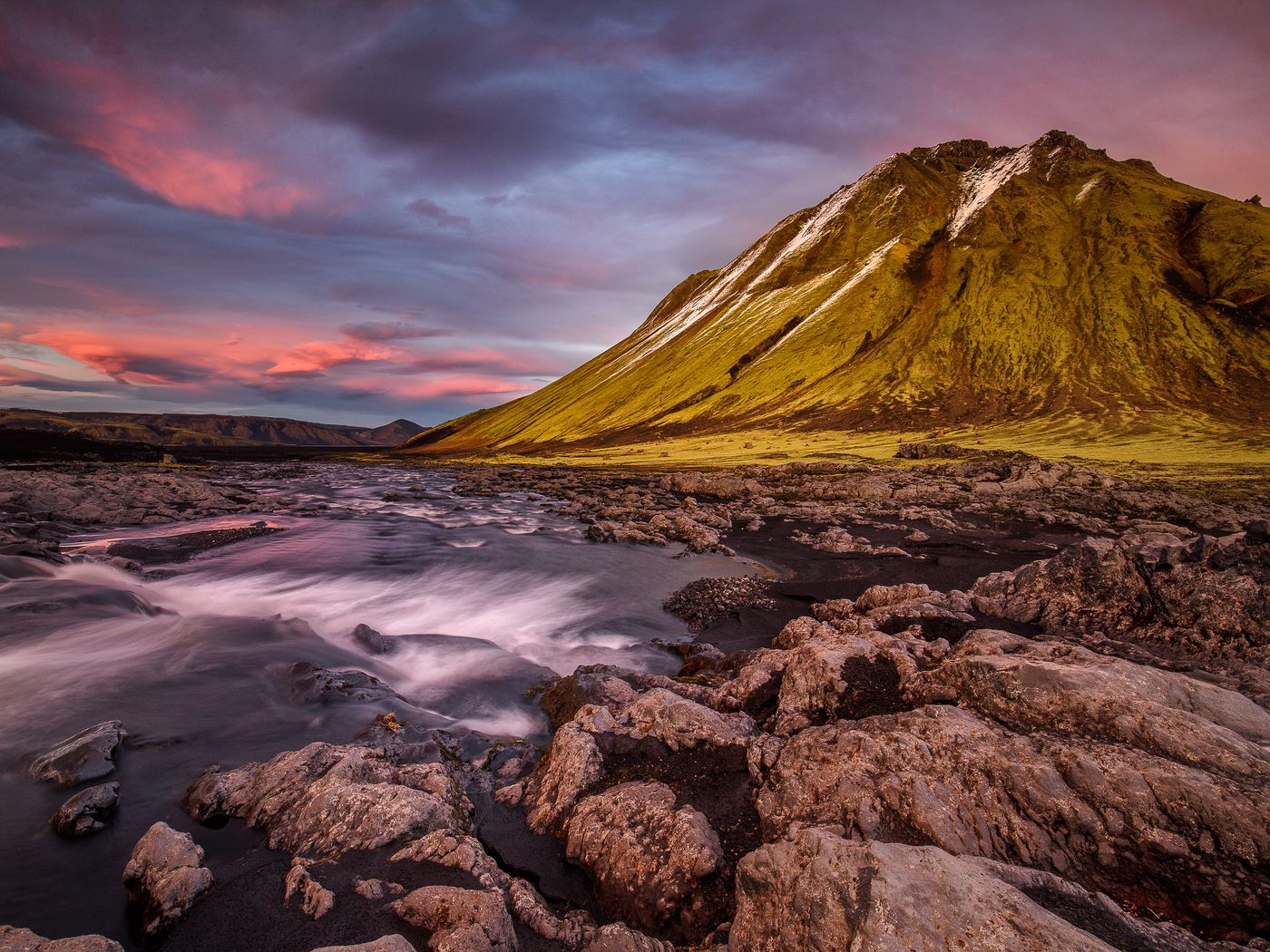 Download 1400x1050 iceland, mountains, river, stones, flow wallpaper, background standard 4:3