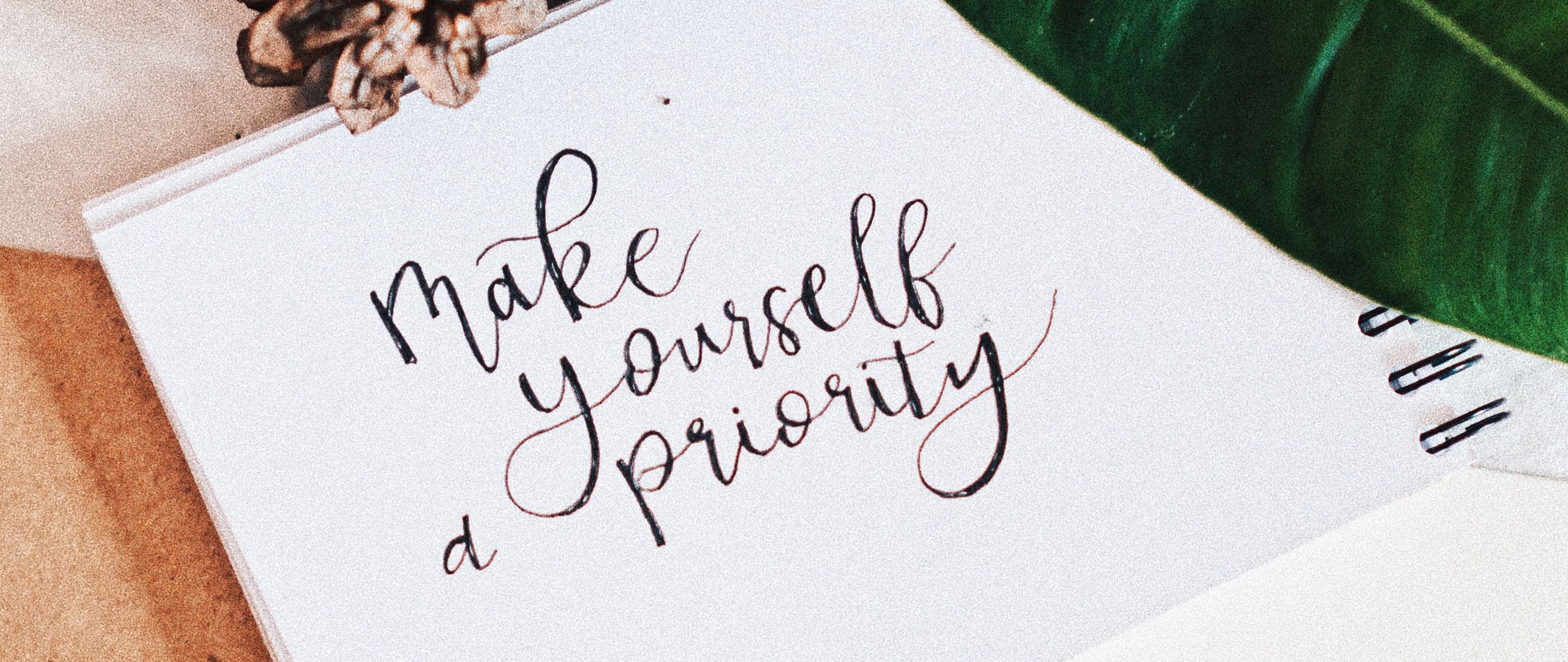 Download 2560x1080 inscription, advice, lettering, pine cones, plant wallpaper, background dual wide 1080p