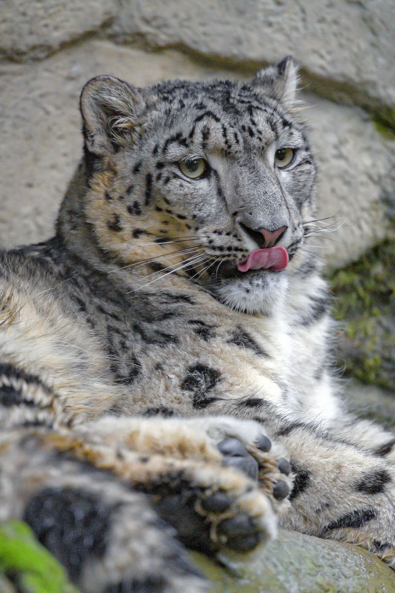 Download 800x1200 irbis, protruding tongue, paws, predator, big cat, wildlife wallpaper, background iphone 4s/4 for parallax