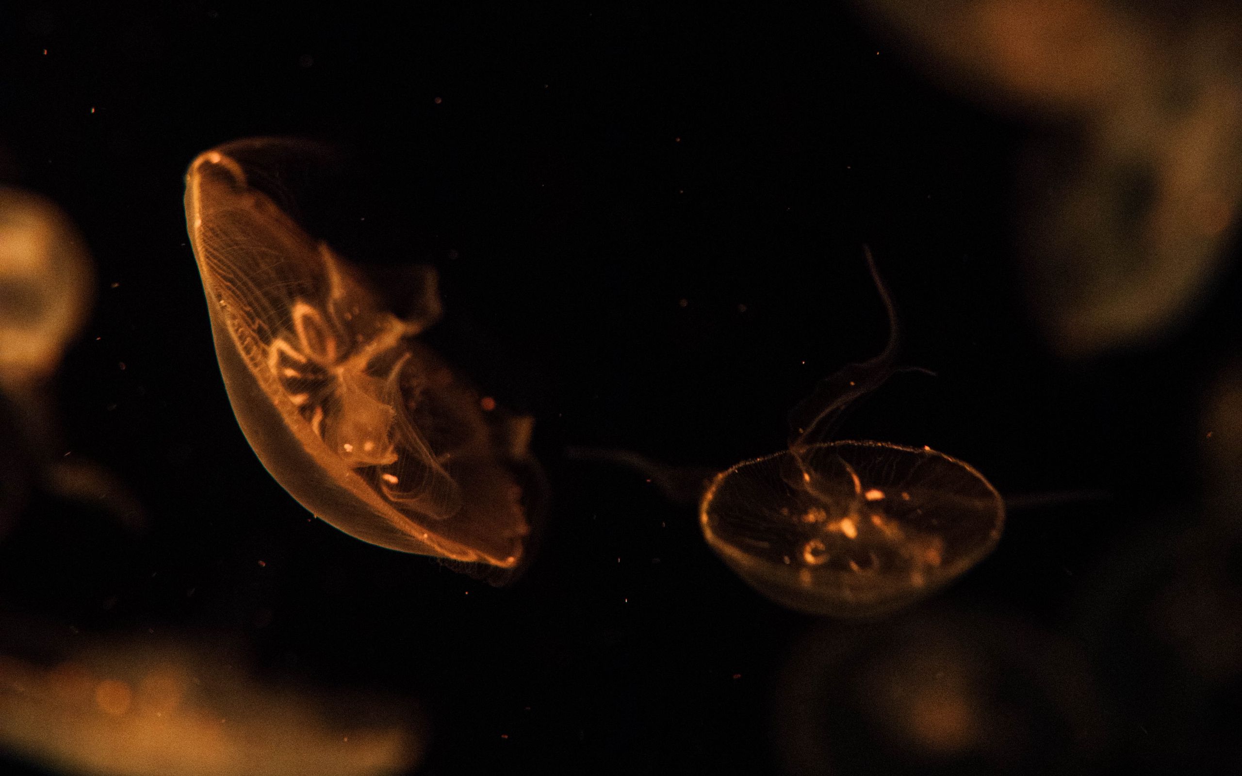 Download 2560x1600 jellyfish, creatures, brown, underwater, depth wallpaper, background widescreen 16:10