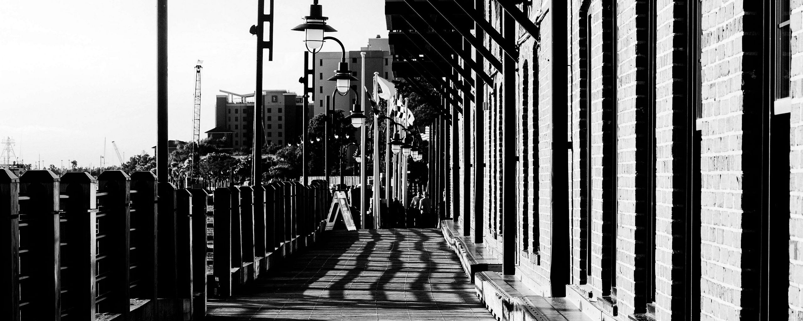 Download 2560x1024 lantern, building, facade, shadows, bw wallpaper, background ultrawide monitor