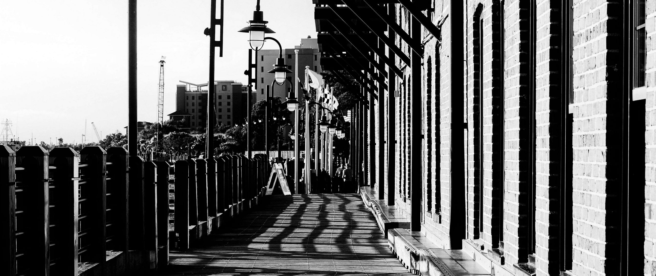 Download 2560x1080 lantern, building, facade, shadows, bw wallpaper, background dual wide 1080p