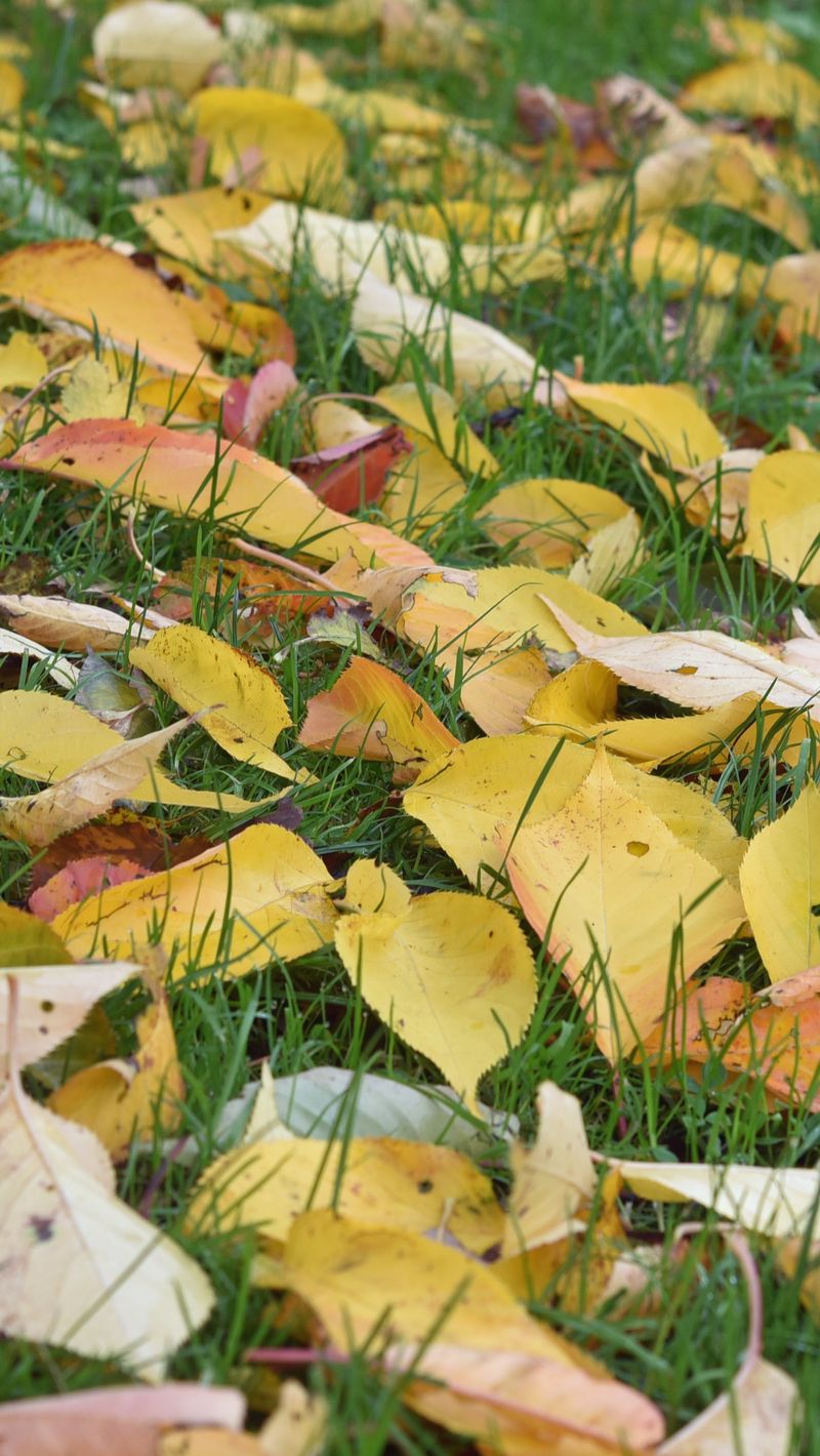 Download 800x1420 leaves, grass, autumn, yellow wallpaper, background iphone se/5s/5c/5 for parallax