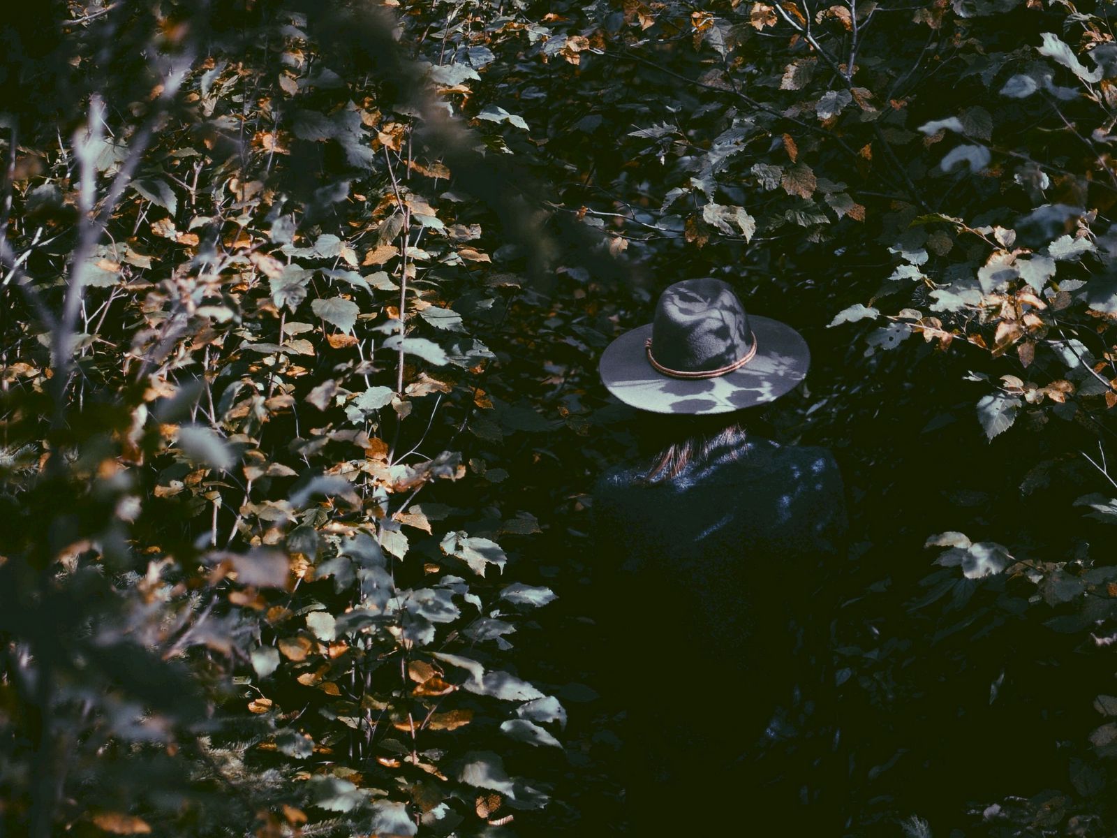 Download 1600x1200 leaves, hat, man, shadow wallpaper, background standard 4:3
