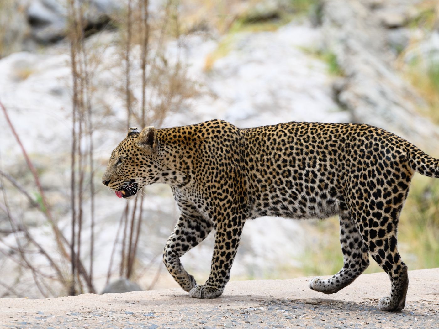 Download 1400x1050 leopard, predator, big cat, wild, animal, blur wallpaper, background standard 4:3