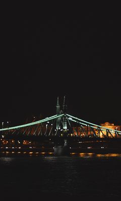 Download 240x400 liberty bridge, bridge, lights, river, budapest, hungary, night wallpaper, background nokia asha 311, samsung galaxy 580, omnia, lg kp500