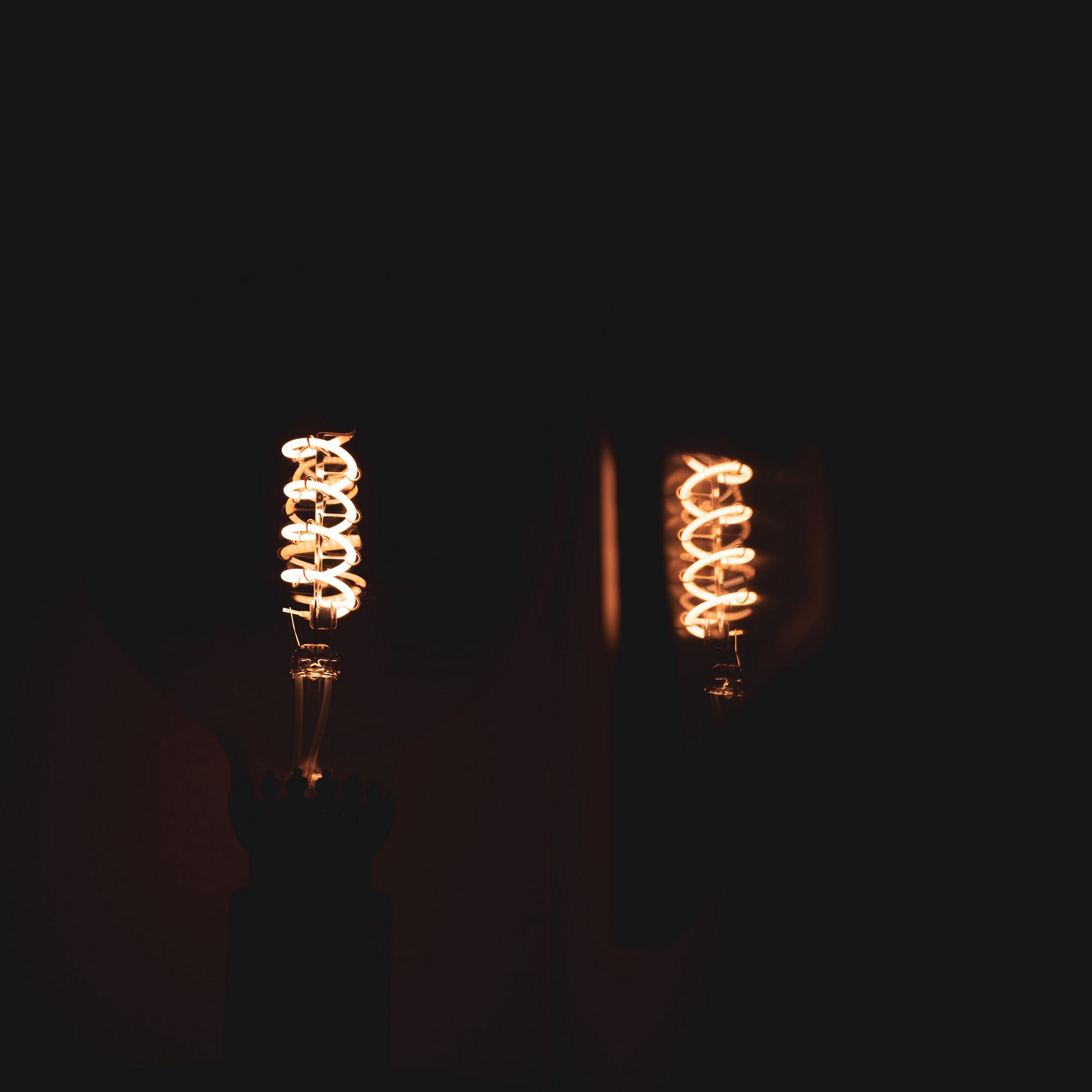 Download 3415x3415 light bulbs, spirals, light, reflection, dark wallpaper, background ipad pro 12.9" retina for parallax
