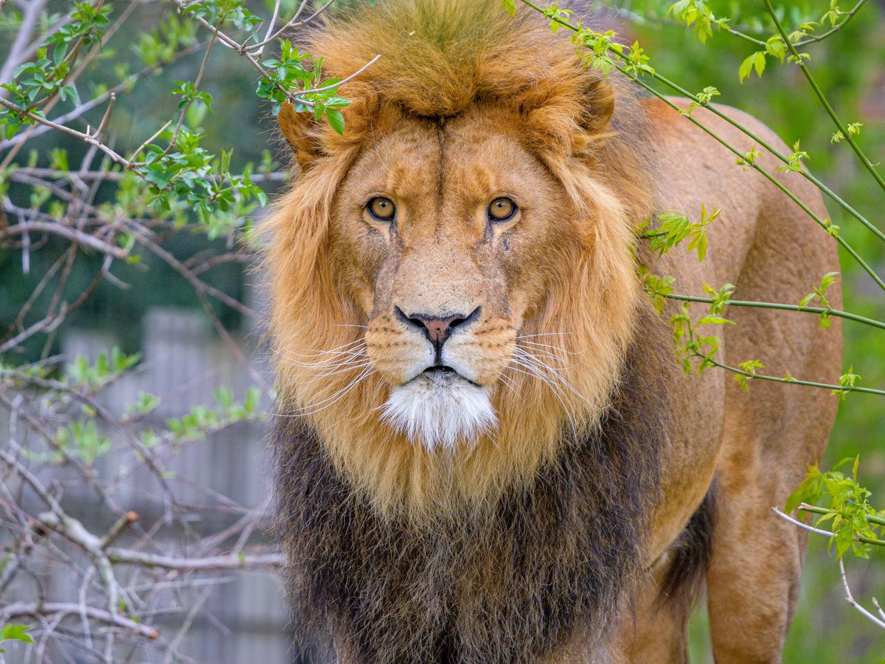 Download 1280x960 lion, animal, big cat, predator, branches wallpaper, background standard 4:3