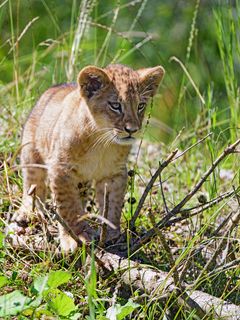 Download 240x320 lion, cub, glance, grass wallpaper, background old mobile, cell phone, smartphone