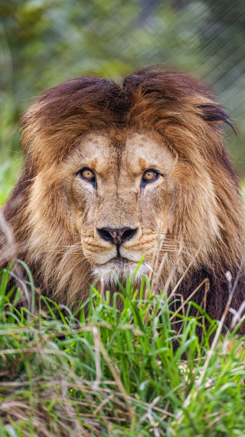 Download 938x1668 lion, predator, grass, glance, animal wallpaper, background iphone 8/7/6s/6 for parallax