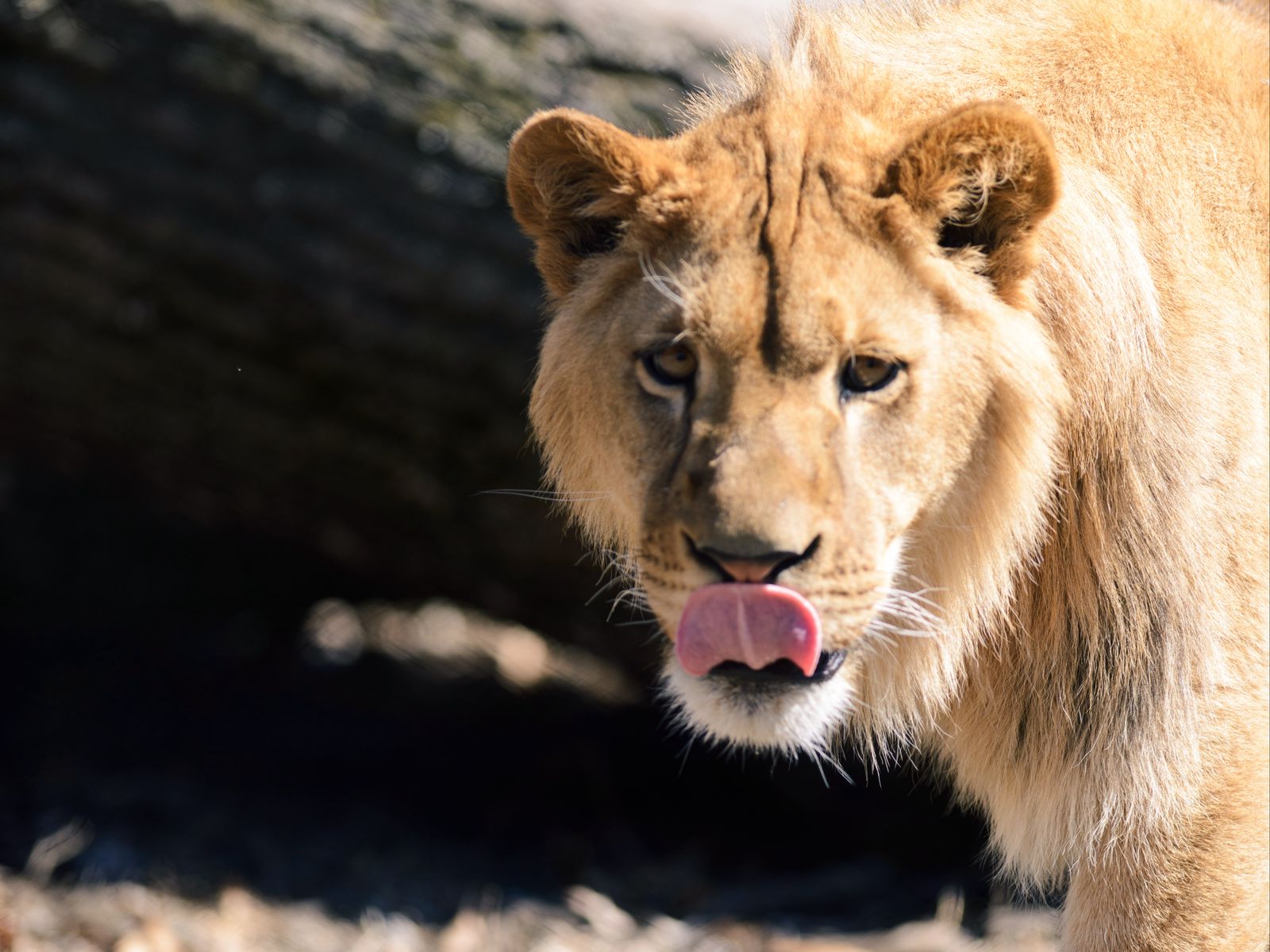 Download 1600x1200 lion, protruding tongue, paw, predator, big cat wallpaper, background standard 4:3