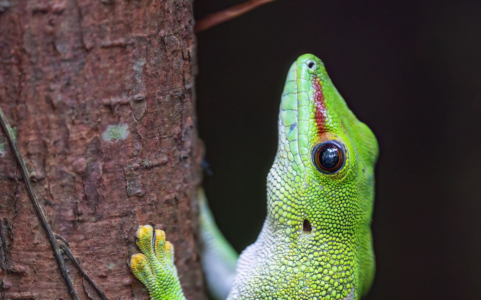 Download 1680x1050 lizard, tree, bright, green, reptile wallpaper, background widescreen 16:10