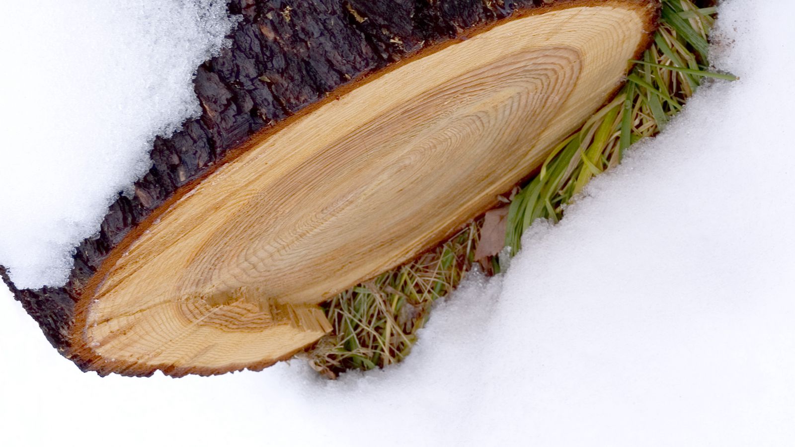 Download 1600x900 log, snow, winter, white wallpaper, background widescreen 16:9