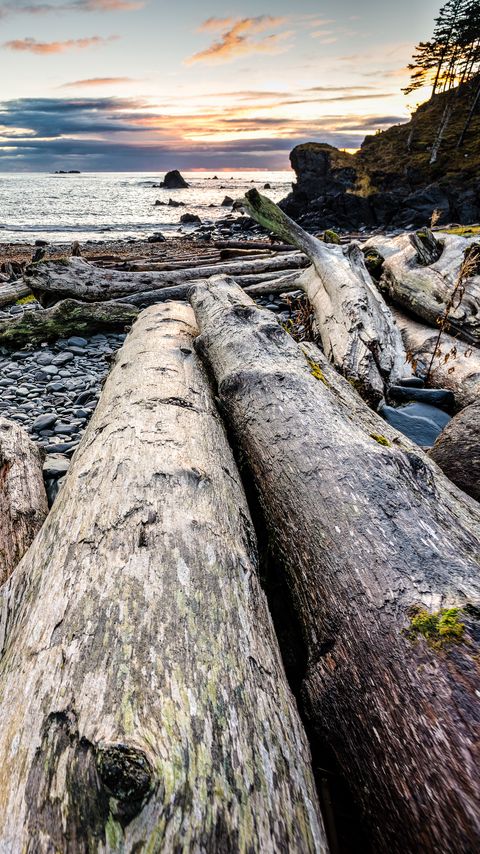 Download 480x854 logs, coast, sunset, stones wallpaper, background nokia lumia 630, sony ericsson xperia