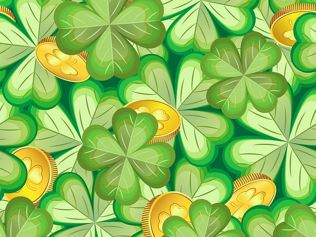 Download 1024x768 luck, clover, coin, pattern wallpaper, background standard 4:3