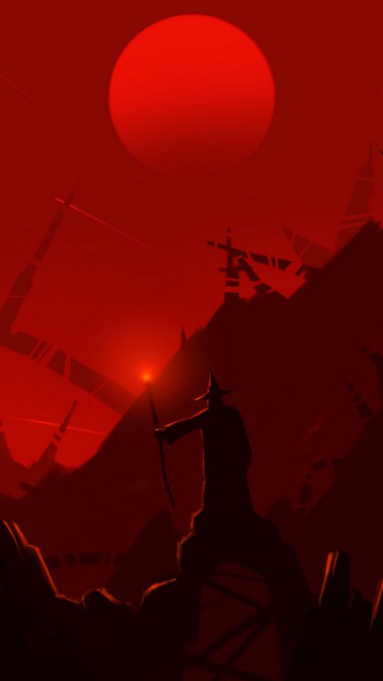 Download 540x960 magician, silhouette, glow, sun, red, art wallpaper, background samsung galaxy s4 mini, microsoft lumia 535, philips xenium, lg l90, htc sensation