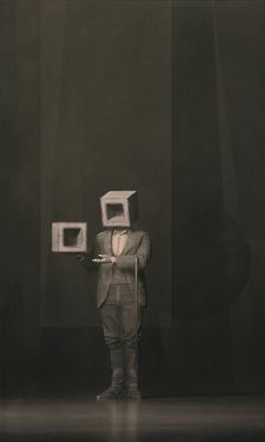 Download 240x400 man, cubes, cane, fantasy, art wallpaper, background nokia asha 311, samsung galaxy 580, omnia, lg kp500
