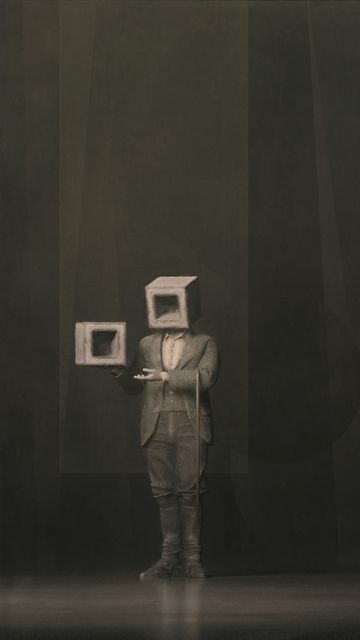 Download 360x640 man, cubes, cane, fantasy, art wallpaper, background nokia n8, c5, c6, c7, e7, x6 nokia 5800, 5230, 5228, sony ericsson vivaz