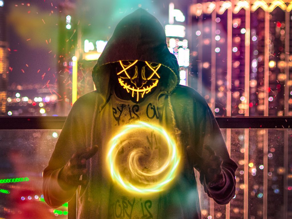 Download 1024x768 mask, hood, magic, ball, fire wallpaper, background standard 4:3