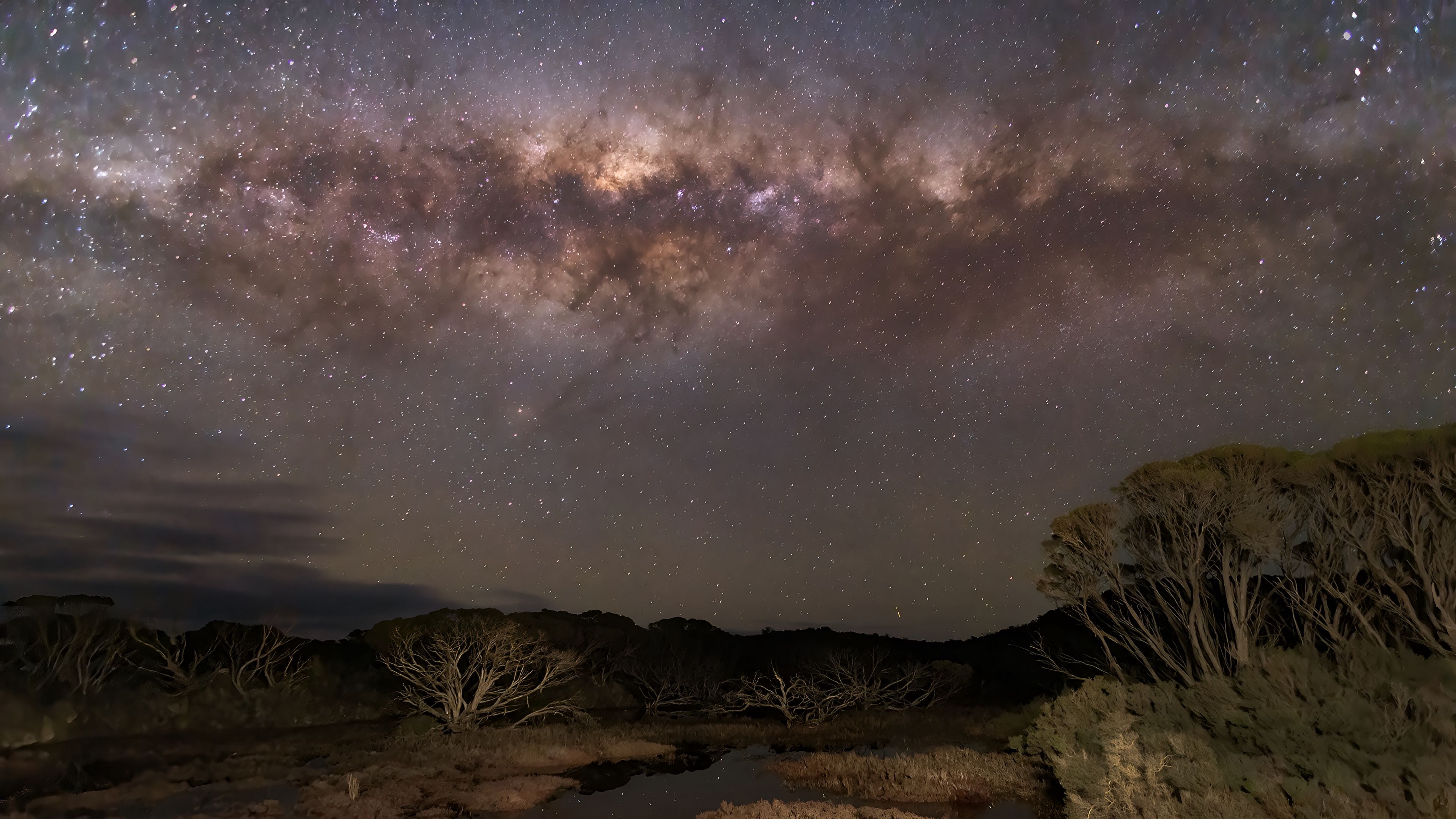 Download 3840x2160 milky way, stars, sky, space, trees, dark, landscape wallpaper, background 4k uhd 16:9