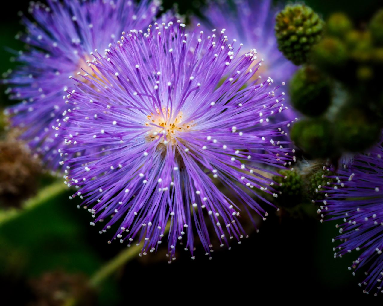 Download 1280x1024 mimosa pudica, mimosas, flowers, macro, blur wallpaper, background standard 5:4