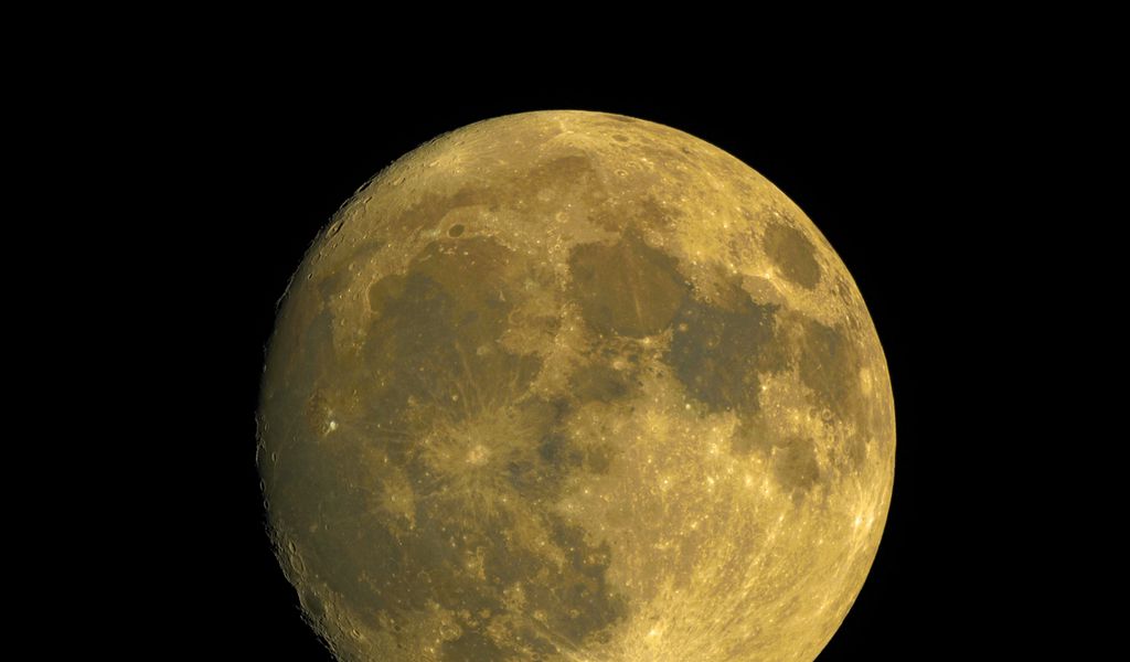 Download 1024x600 moon, satellite, craters, yellow, space wallpaper, background netbook, tablet