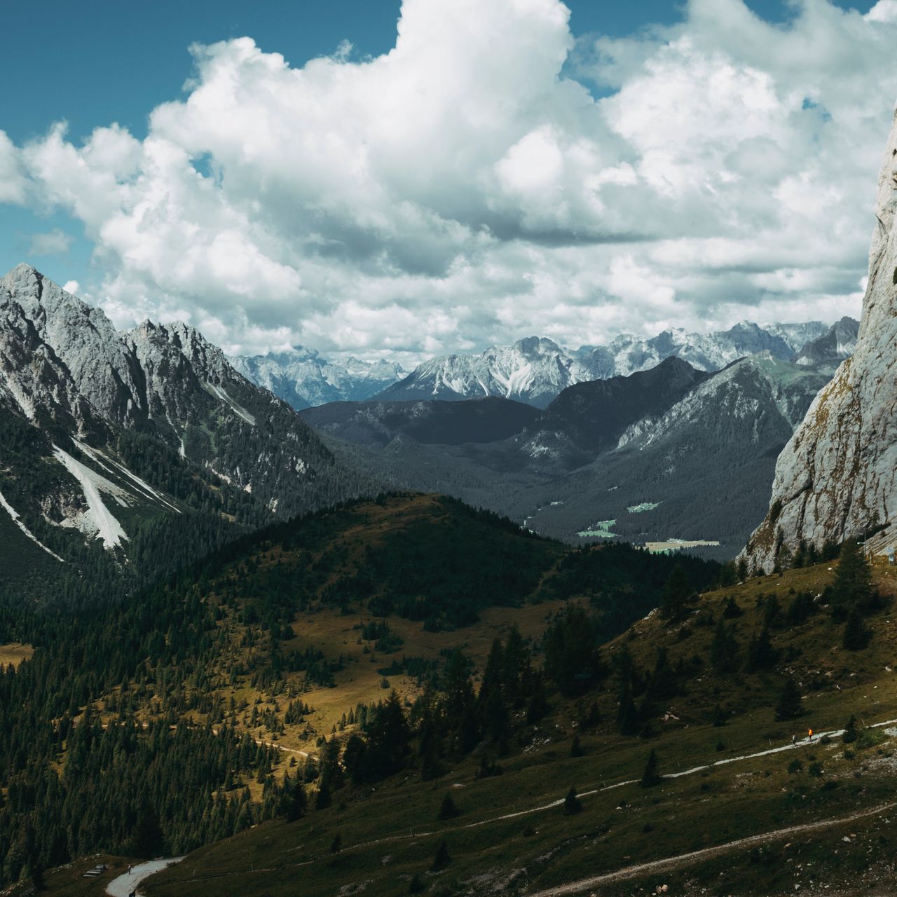 Download 1280x1280 mountains, clouds, paths, aerial view, landscape wallpaper, background ipad, ipad 2, ipad mini for parallax