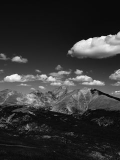 Download 240x320 mountains, hill, clouds, field, bw wallpaper, background old mobile, cell phone, smartphone