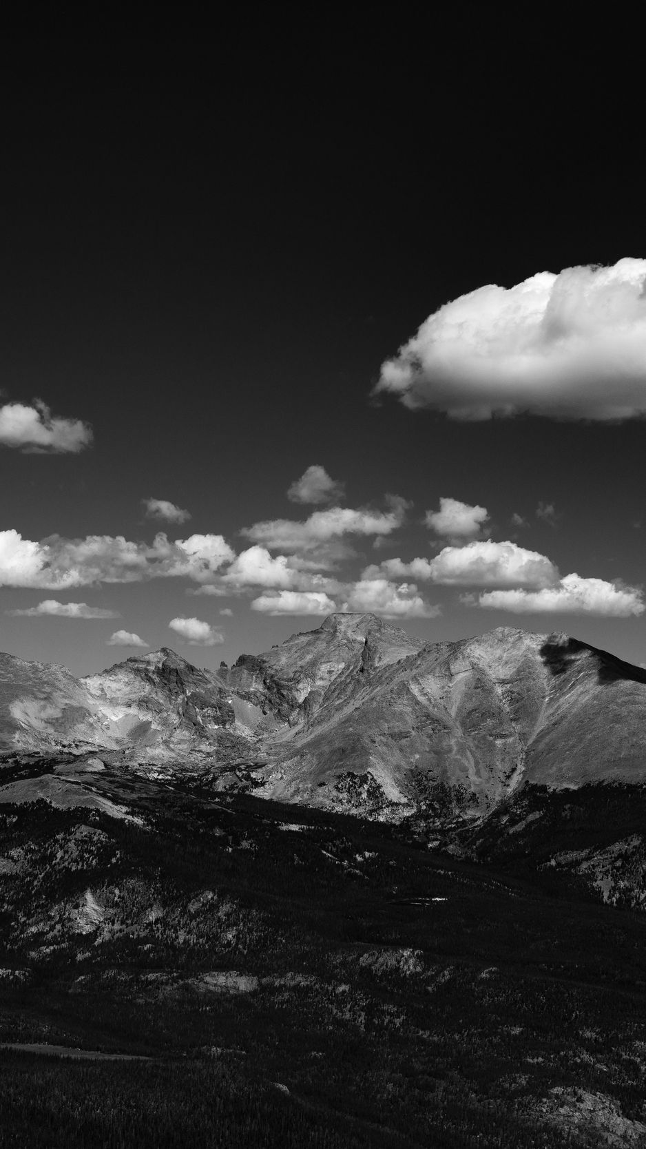 Download 938x1668 mountains, hill, clouds, field, bw wallpaper, background iphone 8/7/6s/6 for parallax