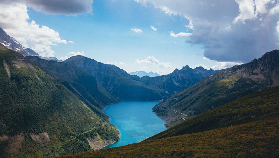 Download 960x544 mountains, nature, landscape, clouds, lake wallpaper, background playstation ps vita