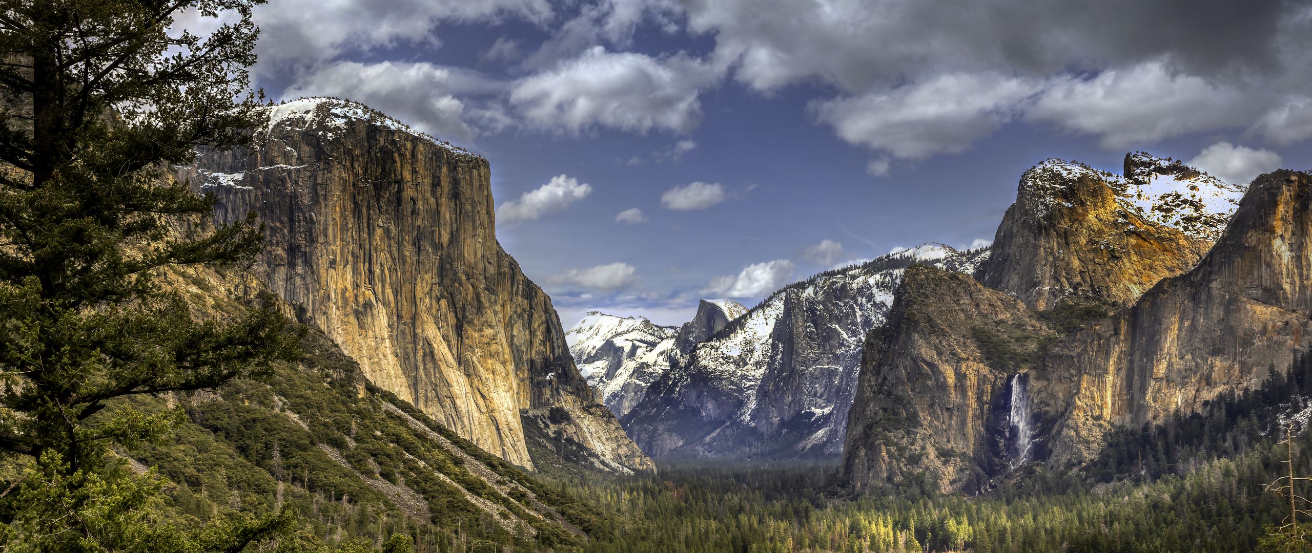 Download 2560x1080 mountains, slope, trees, clouds, nature wallpaper, background dual wide 1080p